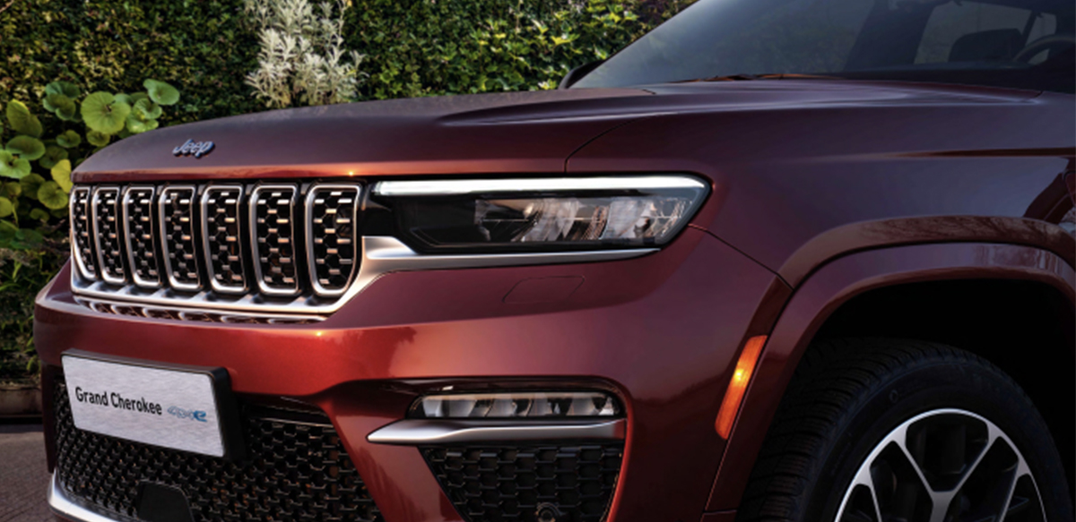 EXPLORE PERFORMANCEThe new electric Jeep Grand Cherokee 4xe features 21’’ polished alloy wheels, a panoramic roof, LED lights and an exclusive passenger screen. The range of colours perfectly enhance the logos and the blue accents of the Jeep 4xe Hybrid.
